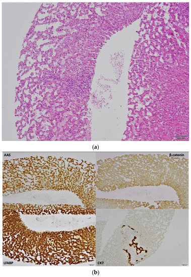 - Miller, G.C.; Campbell, C.M.; Manoharan, B.; Bryant, R.; Cavallucci, D.; O’Rourke, N.; Clouston, A.D. Subclassification of hepatocellular adenomas: Practical considerations in the implementation of the Bordeaux criteria. Pathology 2018, 50, 593–599. [Google Scholar] [CrossRef] [PubMed]