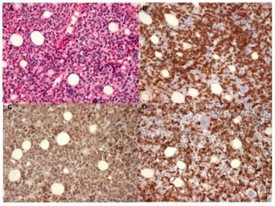 - Campo, E.; Harris, N.L.; Jaffe, E.S.; Pileri, S.A.; Stein, H.; Thiele, J.; Vardiman, J.W. WHO Classification of Tumours of Haematopoietic and Lymphoid Tissues, 4th ed.; IARC Press: Lyon, France, 2008; Volume 2. [Google Scholar]