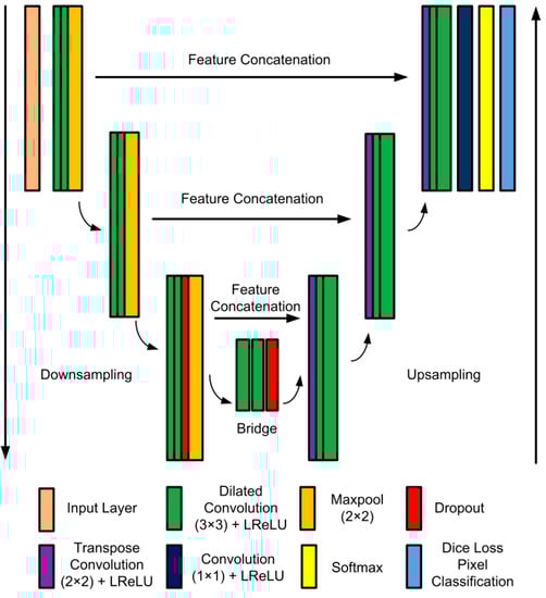 - Ronneberger, O.; Fischer, P.; Brox, T. U-net: Convolutional networks for biomedical image segmentation. In International Conference on Medical Image Computing and Computer-Assisted Intervention; Springer: Cham, Switzerland, 2015; pp. 234–241. [Google Scholar]