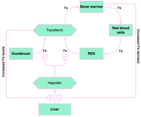 - Drakesmith, H.; Prentice, A.M. Hepcidin and the iron-infection axis. Science 2012, 338, 768–772. [Google Scholar] [CrossRef]