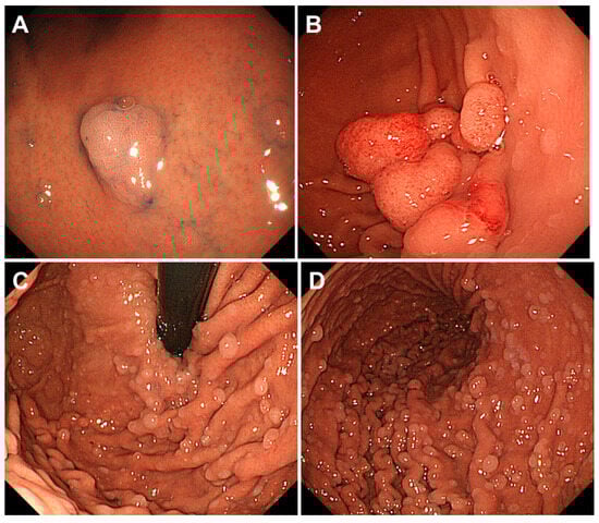 - Iwamuro, M.; Kawano, S.; Otsuka, M. An Unusual Case of Gastric Polyposis. Gastroenterology 2023, 165, 1110–1113. [Google Scholar] [CrossRef] [PubMed]