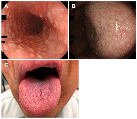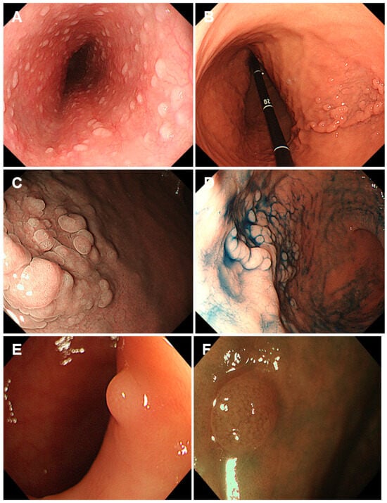 - Zhao, Y.; Lv, F.; Yang, X.; Wang, Y.; Zhang, S.; Li, P. Cronkhite-Canada Syndrome Associated with Superficial Esophageal Carcinoma: A Case Report and Literature Review. Front. Med. 2022, 9, 855336. [Google Scholar] [CrossRef]