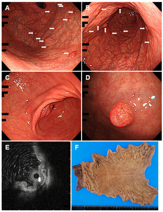 - Namikawa, T.; Ishida, N.; Yokota, K.; Munekage, E.; Iwabu, J.; Munekage, M.; Uemura, S.; Maeda, H.; Kitagawa, H.; Kobayashi, M.; et al. Early gastric cancer with multiple submucosal heterotopic gastric gland: A case report. Mol. Clin. Oncol. 2019, 10, 583–586. [Google Scholar] [CrossRef]