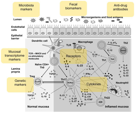 For that reason, the early identification of patients who will lose clinical responses to biological therapies is crucial for their prognoses. Recently, in clinical practice, the implementation of different immune markers, microbiome, anti-drug antibodies, and genetics are used as a monitoring tool determining the outcome of biological therapy [58].