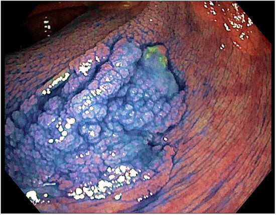- Morales, T.G.; Bhattacharyya, A.; Camargo, E.; Johnson, C.; Sampliner, R.E. Methylene blue staining for intestinal metaplasia of the gastric cardia with follow-up for dysplasia. Gastrointest. Endosc. 1998, 48, 26–31. [Google Scholar] [CrossRef] [PubMed]