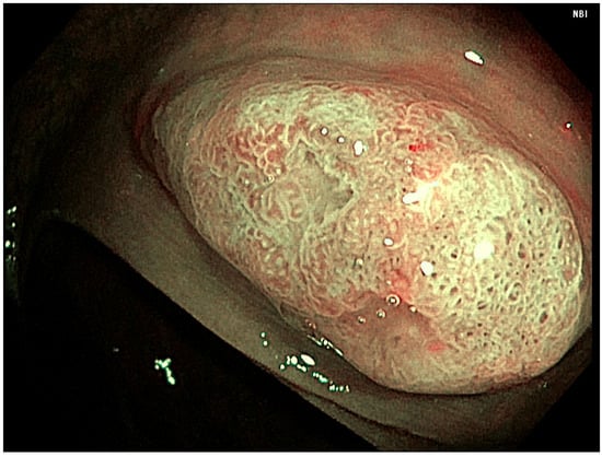 In the last few years, interest in sessile serrated lesions (SSL) has grown, given that approximately 20–30% of CRC cases are thought to arise from the serrated polyp pathway, which is a unique carcinogenesis pathway that bypasses the traditional adenoma–carcinoma sequence [,]. Additionally, patients with a presence of SSLs are at increased risk of synchronous and metachronous advanced neoplasia compared to patients with conventional adenoma alone [,].