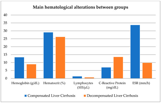 Figure 1 shows the main hematological alterations between the compensated vs. decompensated groups.