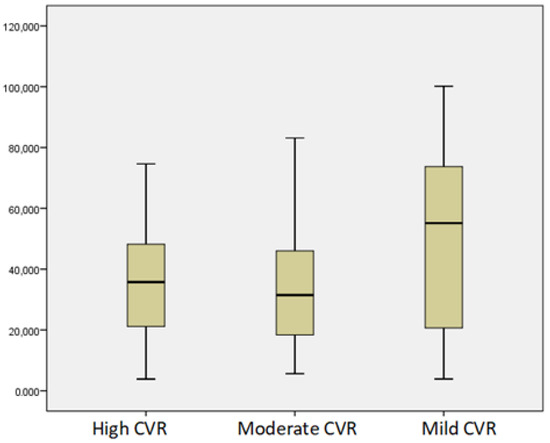 Mean levels of vitamin D according to CVR by SCORE Risk Chart.