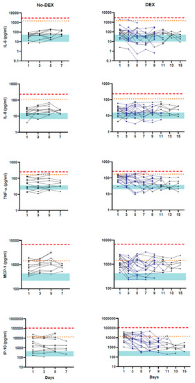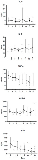 - Kox, M.; Waalders, N.J.B.; Kooistra, E.J.; Gerretsen, J.; Pickkers, P. Cytokine Levels in Critically Ill Patients With COVID-19 and Other Conditions. JAMA 2020, 324, 1565–1567. [Google Scholar] [CrossRef]