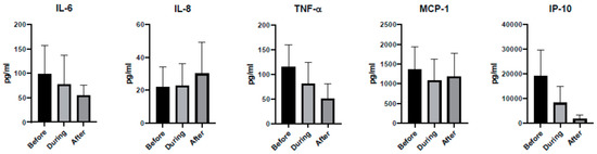 - Wong, C.K.; Lam, C.W.; Wu, A.K.; Ip, W.K.; Lee, N.L.; Chan, I.H.; Lit, L.C.; Hui, D.S.; Chan, M.H.; Chung, S.S.; et al. Plasma inflammatory cytokines and chemokines in severe acute respiratory syndrome. Clin. Exp. Immunol. 2004, 136, 95–103. [Google Scholar] [CrossRef] [PubMed]