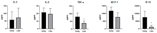 - Yang, Y.; Shen, C.; Li, J.; Yuan, J.; Wei, J.; Huang, F.; Wang, F.; Li, G.; Li, Y.; Xing, L.; et al. Plasma IP-10 and MCP-3 levels are highly associated with disease severity and predict the progression of COVID-19. J. Allergy Clin. Immunol. 2020, 146, 119–127.e114. [Google Scholar] [CrossRef]