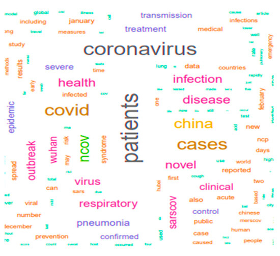Figure 1 represents the word cloud of common terms that appeared during the COVID-19 pandemic. The dataset mining was performed to identify these words having a higher impact on the social being; however, the education system during this emergency has been seen to be a less prominent sentiment. Figure 1 depicts the presentation of high-frequency search terms in the word cloud diagram. More often, coronavirus patients have more prevalent search patterns along with health care, various syndromes and China seen.