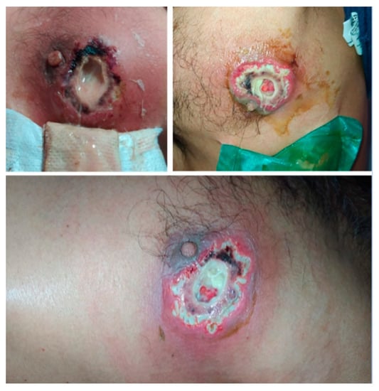 Lesion evolution at discharge, after antibiotic and negative pressure therapy.