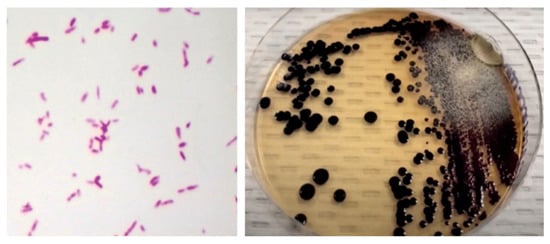 Chromobacterium violaceum is a facultative anaerobic, carbohydrate fermenter, catalase-positive, and Gram-negative bacillus. It grows on blood, chocolate, and MacConkey agar within 18–24 h and can produce pigmented colonies due to the production of violacein, a metabolite with apoptotic activity on some cells []. Nonetheless, it can also grow as unpigmented colonies.