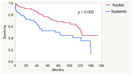 There were no differences between the proportions of systemic and pocket infections, in age, co-morbidity, or the proportions of women and men.