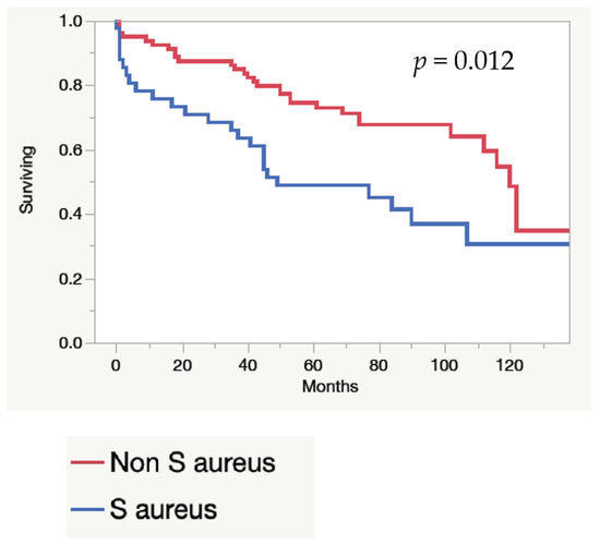 Long-term survival for CIED infections caused by S. aureus and non-S aureus.