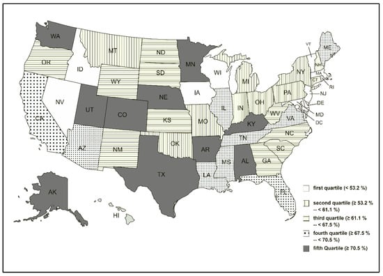 - Mapchart. Available online: https://mapchart.net/usa.html (accessed on 22 January 2022).