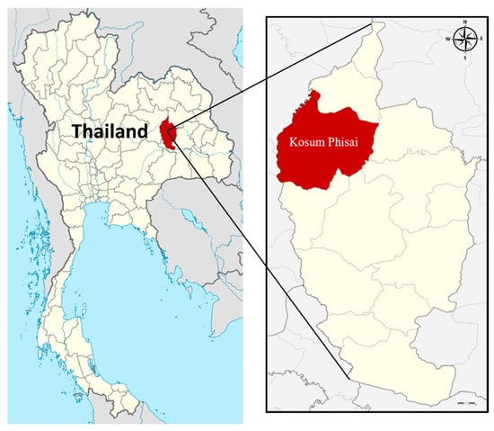Map shows Kosum Phisai district, Maha Sarakham in the northeast of Thailand, where the Kosumpee Forest Park is located. (Source: https://en.wikipedia.org/wiki/Maha_Sarakham_province, accessed on 18 September 2022).
