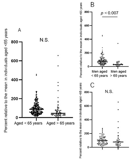 - Müller, L.; Andrée, M.; Moskorz, W.; Drexler, I.; Walotka, L.; Grothmann, R.; Ptok, J.; Hillebrandt, J.; Ritchie, A.; Rabl, D.; et al. Age-dependent immune response to the Biontech/Pfizer BNT162b2 coronavirus disease 2019 vaccination. Clin. Infect. Dis. 2021, 73, 2065–2072. [Google Scholar] [CrossRef] [PubMed]