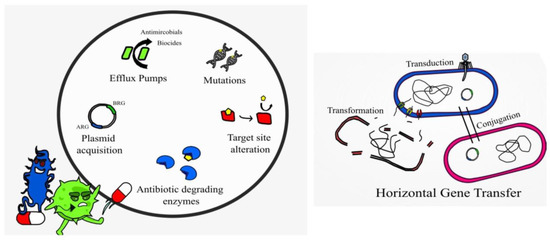 Interestingly, studies have described the use of AMPs to block or inhibit the action of efflux pumps, such as the small multidrug resistance (SMR) efflux pump [68]. Alarmingly, resistance to colistin in A. baumannii is due to a complete loss of LPS from the cell membrane [69]. Bacteria may also produce and secrete non-proteolytic AMP-sequestering proteins, and these bind the AMP preventing their action, e.g., the enzyme staphylokinase produced by S. aureus [68]. Research studies demonstrate that sublethal doses of AMPs melittin and pexiganan prime bacterial cells to increase both tolerance and persistence as demonstrated with E. coli [70]. Melittin has demonstrated anticancer activity, which is non-specific resulting in cytotoxicity and hemolytic activity [44]. Resistance to bacteriocins may occur when bacteria mimic the defense mechanisms of the producer strain, adapt the cell membrane or via enzymatic activity in a similar manner to antibiotic resistance [11] (Figure 2). For example, bacteria may have resistance to nisin by producing dehydropeptide reductase, or nisinase to deactivate the bacteriocin [9]. Augmenting antibiotic therapy with AMPs may hinder AMP resistance and provide effective antibacterial action [43]. Genetically engineering peptides to contain a higher content of key antimicrobial amino acids may also prevent AMP resistance and provide more potent broad-spectrum action [67].