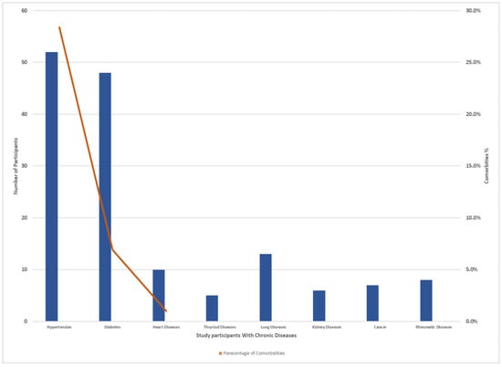 Number of chronic diseases and comorbidities percent distribution among study participants.