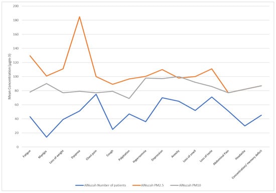 PM10 and PM2.5 exposure and response to long COVID-19 in Al-Nuzhah area.