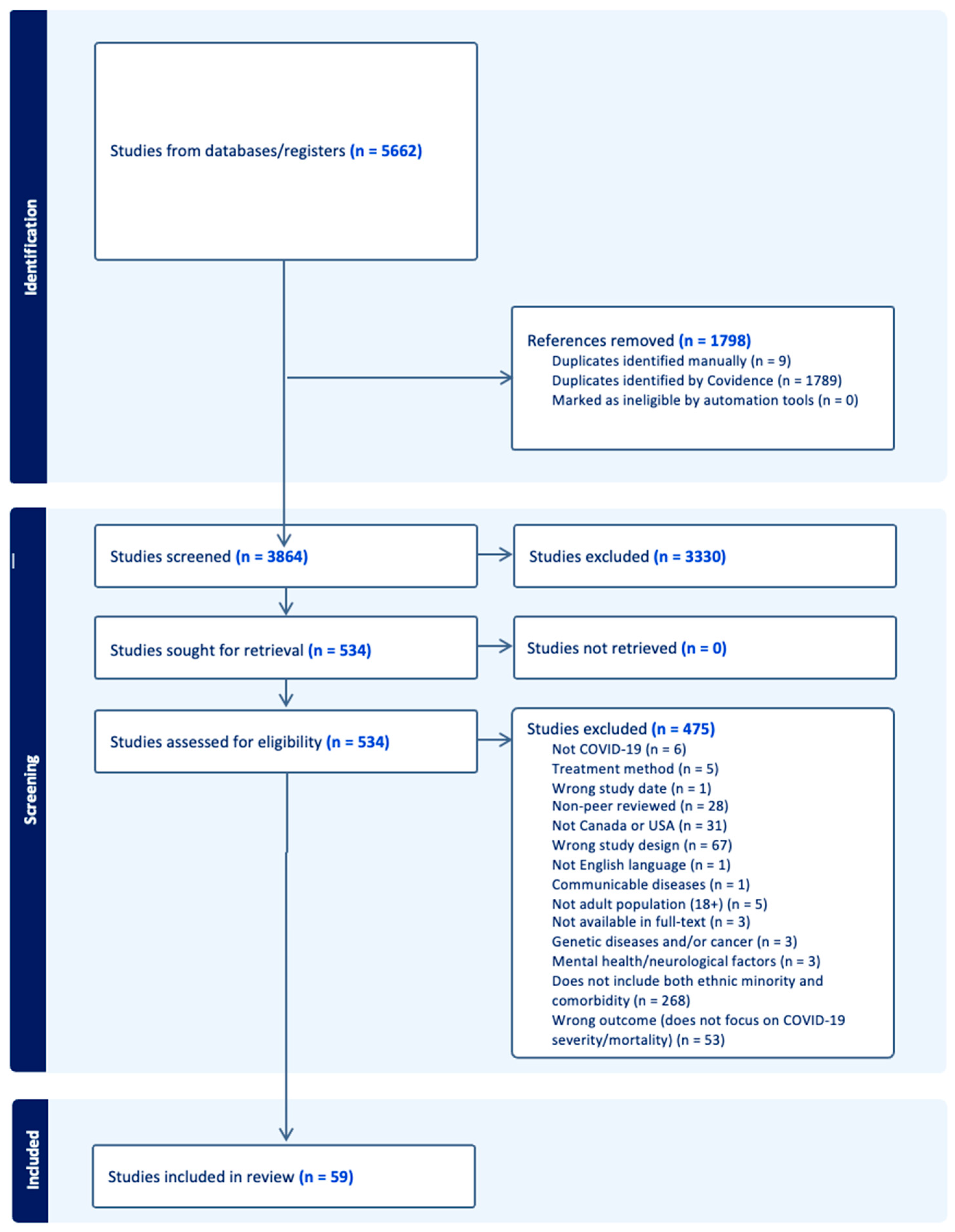 APA StyleMac, C., Cheung, K., Alzoubi, T., Atacan, C., Sehar, H., Liyanage, S., AlShurman, B. A., & Butt, Z. A. (2024). The Impact of Comorbidities among Ethnic Minorities on COVID-19 Severity and Mortality in Canada and the USA: A Scoping Review. Infectious Disease Reports, 16(3), 407-422. https://doi.org/10.3390/idr16030030