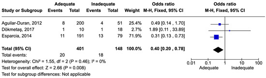 Figure 7. Forest plot of studies included in the meta-analysis to evaluate adequate antimicrobial therapy and mortality in urinary tract infections [55,63,70].