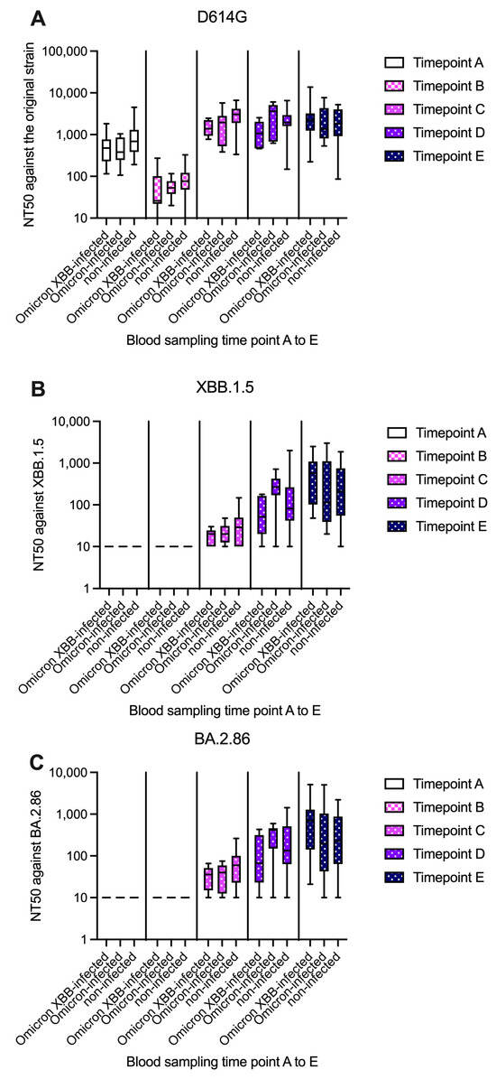 - Kato, H.; Kurosawa, T.; Horikawa, K.; Kimura, Y.; Miyakawa, K.; Ryo, A.; Goto, A. Humoral response against spike protein enhanced by fifth and sixth COVID-19 mRNA vaccine in the uninfected and infected subjects. Hum. Vaccin. Immunother. 2023, 19, 2278376. [Google Scholar] [CrossRef]