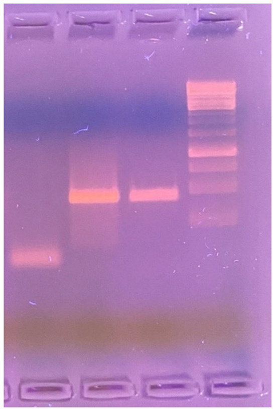 A PCR assay was performed on the skin biopsy tissue to identify the causative microorganism. Amplification was carried out using 1% agarose gel electrophoresis and the LPMF-244 primer set: LPM244-F [5′–3′ GTTCCTCCACCGACAAACAC] and LPM244-R [5′–3′ TTCGTGAGGTACCGGTGAAA], targeting the hemN gene region—specific to Mycobacterium lepromatosis and absent in other known Mycobacterium species (Figure 3).
