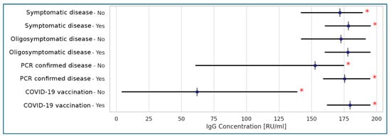 The epidemiology of COVID-19 changed dramatically following the development and licencing of vaccines against SARS-CoV-2 and the subsequent launch of vaccination campaigns [5]. By 31 December 2022, a total of 268,677,438 vaccine doses had been administered across Europe [6]. By the end of 2021, nearly 56% of the Polish population had received at least one dose of the vaccine. Following the introduction of vaccines, numerous studies were published monitoring specific antibody levels in vaccinated populations [7,8,9].
