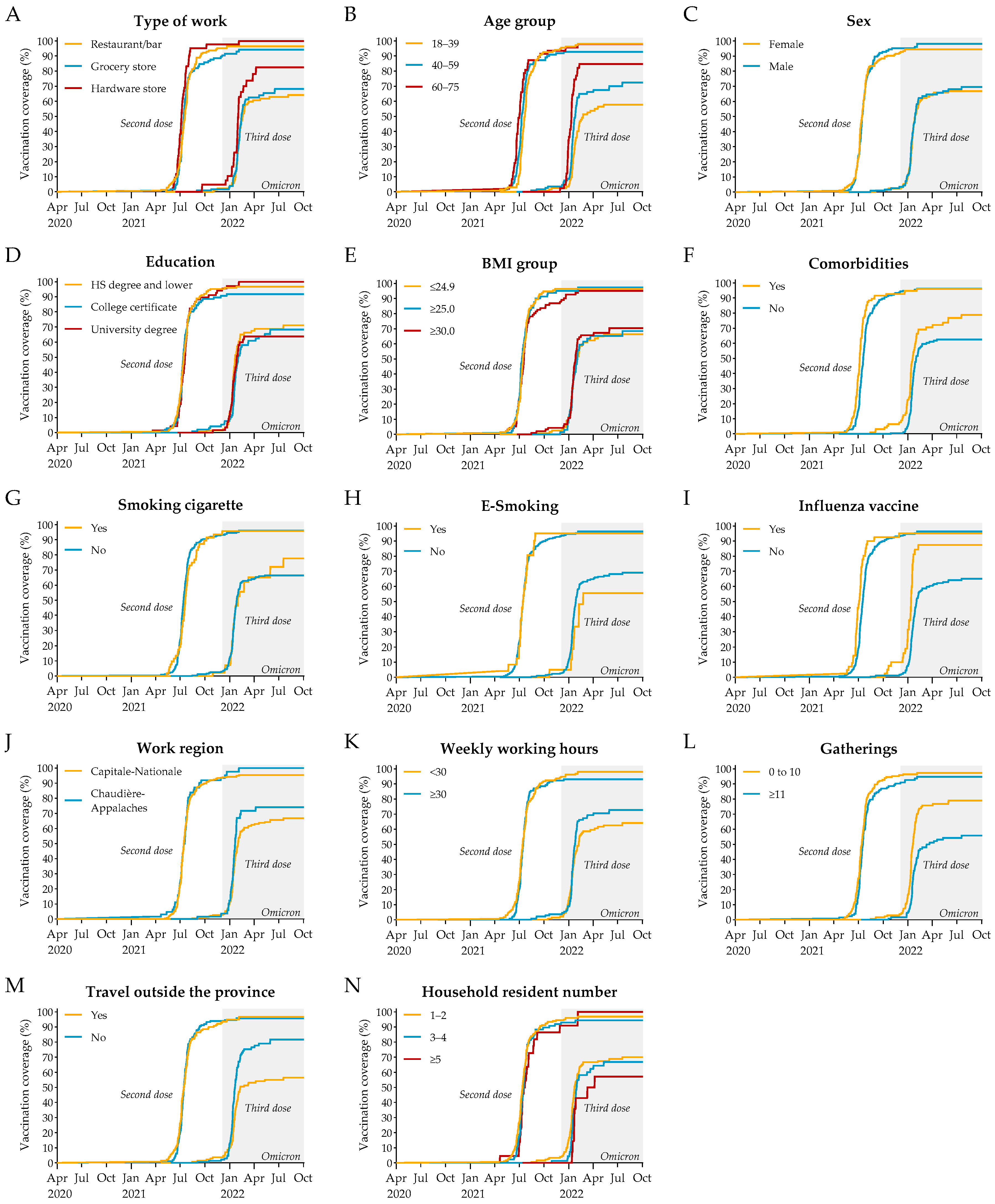 APA StyleThériault, M., Santerre, K., Brousseau, N., Rochette, S., Omar, R. F., Pelletier, J. N., Gilbert, C., Masson, J.-F., Baz, M., Boudreau, D., & Trottier, S. (2025). Profile, Infection, and Vaccination Uptake: A Cohort of Canadian Retail Workers During the SARS-CoV-2 Pandemic. Infectious Disease Reports, 17(5), 122. https://doi.org/10.3390/idr17050122