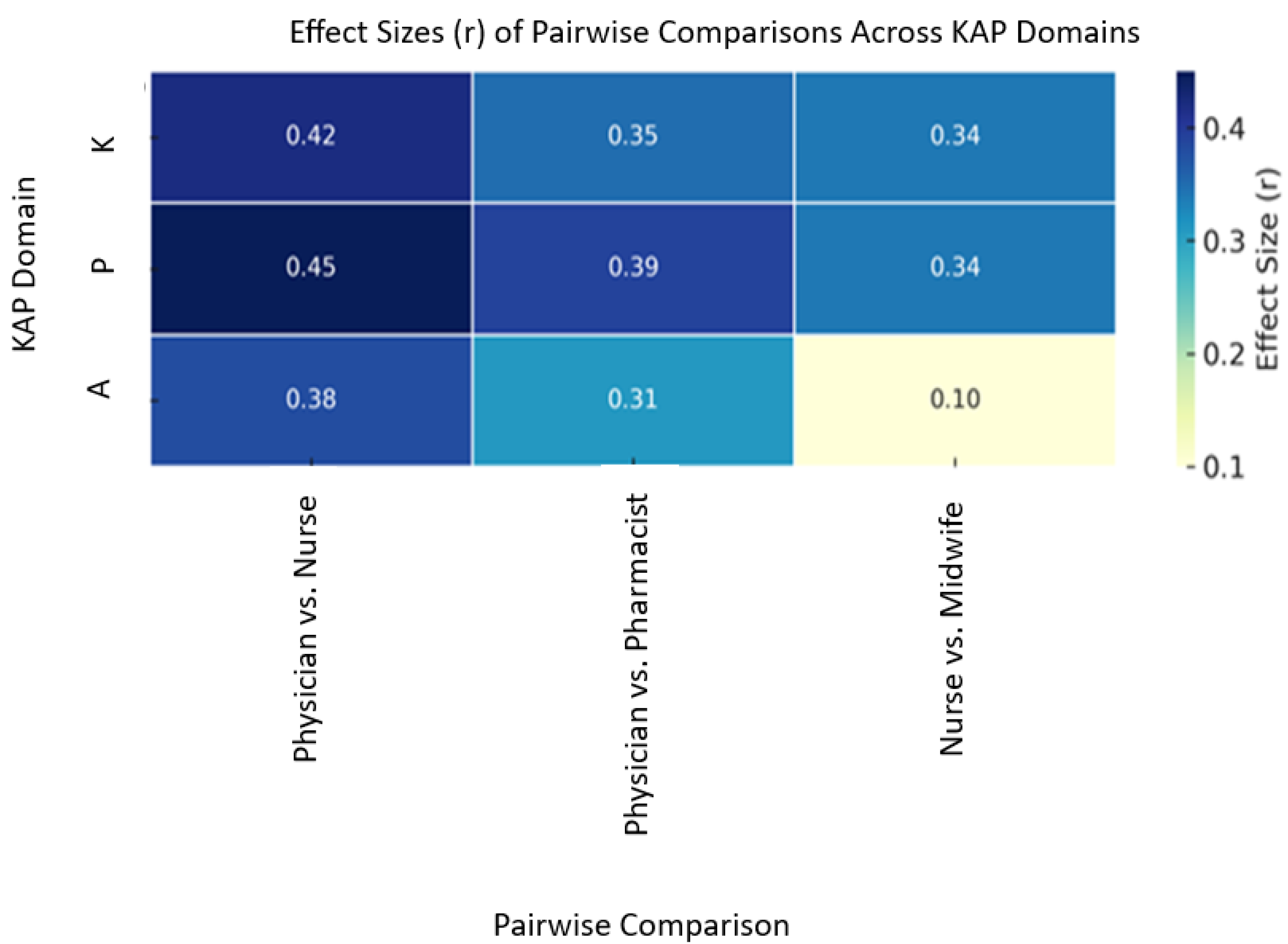 Physician | 30 | 85 (78–92) | 4.2 (3.8–4.5) | 4.5 (4.1–4.8) | 28.7 | <0.001 | 0.18 | vs. Nurse, Pharmacist (K) | <0.001, 0.018 | 0.42, 0.35 |