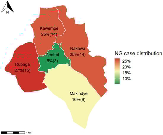 Chicago/Turabian StyleLwigale, Fahad, Conrad Tumwine, Reuben Kiggundu, Patrick Elungat, Hope Mackline, Dathan M. Byonanebye, Andrew Kambugu, and Francis Kakooza. 2025. "Distribution and Factors Associated with Neisseria gonorrhoeae Cases in Kampala, Uganda, 2016–2020" Infectious Disease Reports 17, no. 5: 132. https://doi.org/10.3390/idr17050132