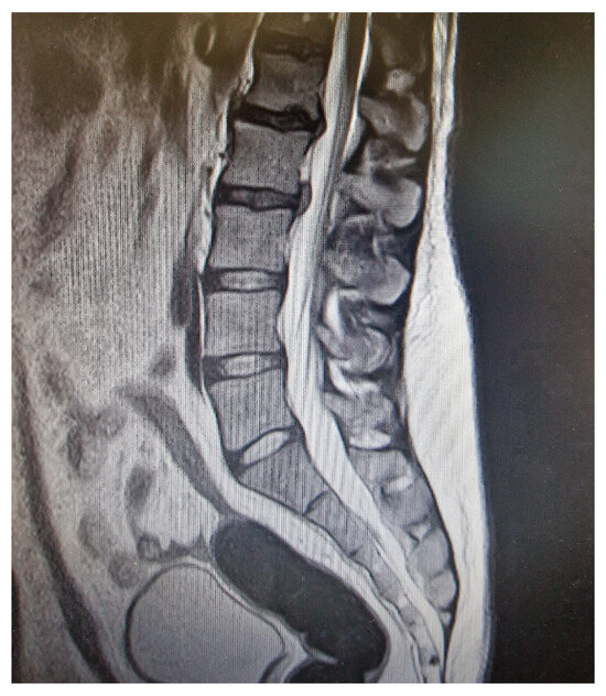 Spinal MRI was performed four days after antibiotic initiation and did not reveal active enhancement or oedema, consistent with the known reduction in imaging sensitivity following treatment [19]. Despite this, the clinical picture and laboratory findings were sufficient for diagnosis.