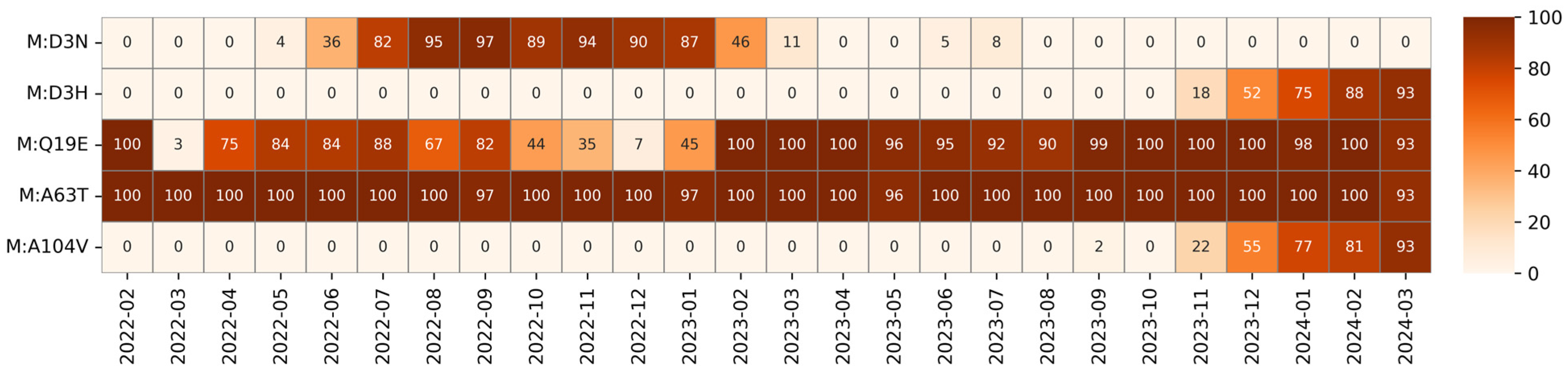 | A104V | Hydrophobic | Hydrophobic | TMH3 | Unknown | Emerging |