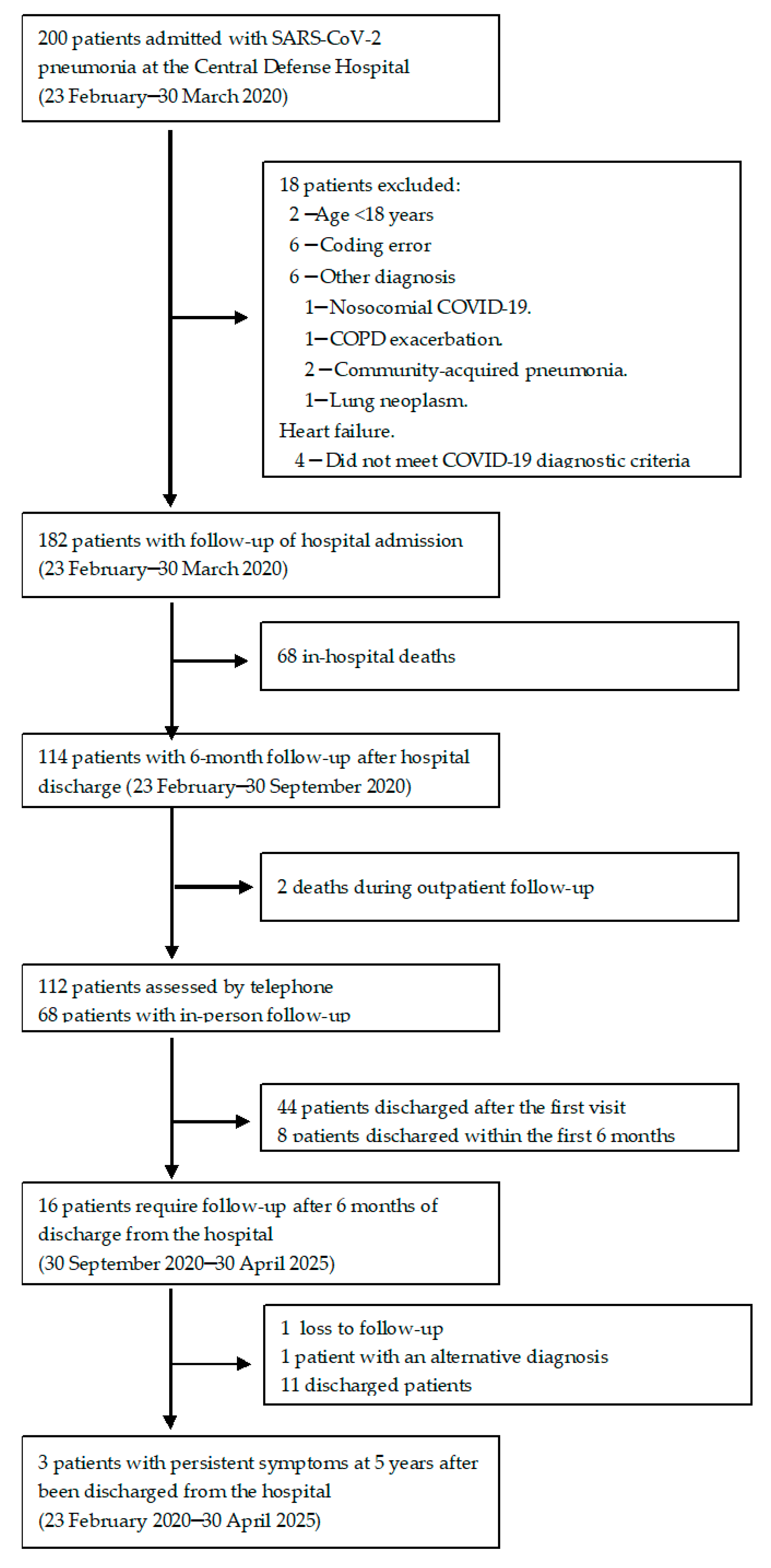 Conde AR, de Novales FJM, Téllez MN, Ortega CG, Muñoz ME. Persistence of Symptoms and Long-Term Recovery in Hospitalized COVID-19 Patients: Results from a Five-Year Follow-Up Cohort. Infectious Disease Reports. 2026; 18(1):8. https://doi.org/10.3390/idr18010008