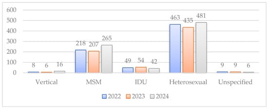 The findings of this study indicate that Romania’s HIV epidemic between 2022 and 2024 is characterized by both epidemiological stability and notable shifts in transmission dynamics. Although the national incidence remains below the European average, the modest rise in newly reported cases and the evolving distribution of transmission routes reflect an increasingly complex epidemiological landscape. The substantial growth in cases among men who have sex with men, from 3.91% in 2007 to 32% in 2024, underscores the need for strengthened, population-specific prevention strategies and broader implementation of evidence-based interventions, including PrEP and targeted sexual-health education.