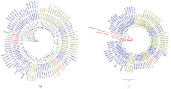 Figure 4a). Construction of a more concise tree with lesser number of genomes representing different geographic regions and different substitution patterns also yielded the same identical country-specific topology, except for isolate MT375469 that clustered with Australian cluster (
