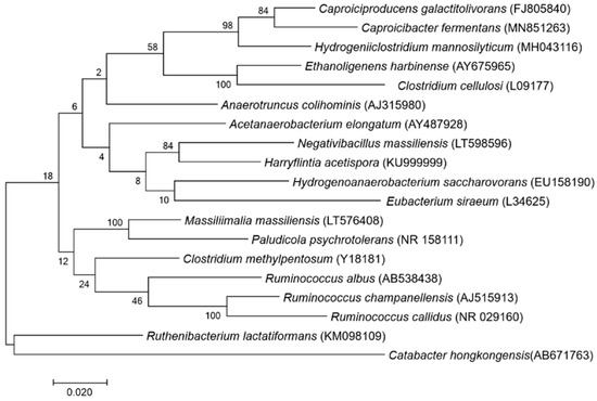 The GenBank accession numbers for the 16S rRNA gene are indicated in parenthesis. The sequences were aligned, and the phylogenetic inferences were obtained using the maximum-likelihood method within the MEGA7 software. The numbers at the nodes are the percentages of the bootstrap values obtained by repeating the analysis 1000 times, in order to generate a majority consensus tree. Catabacter hongkongensis was used as an outgroup. The scale bar represents a 1% nucleotide sequence divergence.