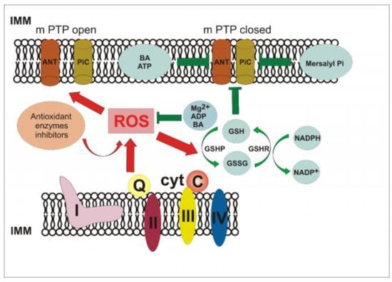 - Halestrap, A.P.; Woodfield, K.Y.; Connern, C.P. Oxidative stress, thiol reagents, andmembrane potential modulate the mitochondrial permeability transition byaffecting nucleotide binding to the adenine nucleotide translocase. J. Biol. Chem. 1997, 272, 3346–3354. [Google Scholar] [CrossRef]