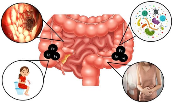 - Yilmaz, B.; Li, H. Gut Microbiota and Iron: The Crucial Actors in Health and Disease. Pharmaceuticals 2018, 11, 98. [Google Scholar] [CrossRef] [PubMed]