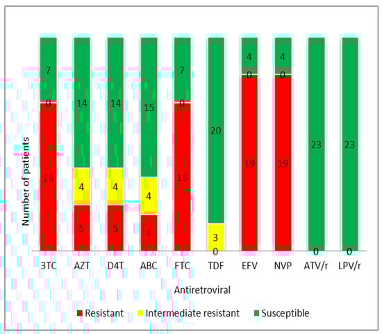 - Hirsch, M.S.; Günthard, H.F.; Schapiro, J.M.; Brun-Vézinet, F.; Clotet, B.; Hammer, S.M.; Johnson, V.A.; Kuritzkes, D.R.; Mellors, J.W.; Pillay, D.; et al. Antiretroviral drug resistance testing in adult HIV-1 infection: 2008 recommendations of an International AIDS Society-USA panel. Clin. Infect. Dis. 2008, 47, 266–285. [Google Scholar] [CrossRef] [PubMed]