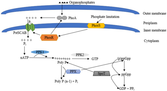 - Santos-Beneit, F. The Pho regulon: A huge regulatory network in bacteria. Front. Microbiol. 2015, 6, 402. [Google Scholar] [CrossRef] [PubMed]