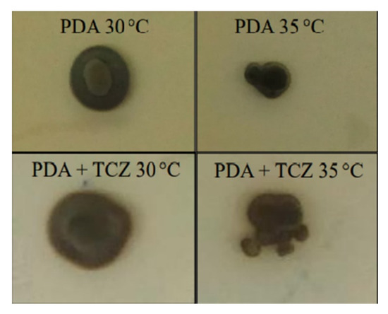 - Franzen, A.J.; Cunha, M.M.L.; Batista, E.J.O.; Seabra, S.H.; De Souza, W.; Rozental, S. Effects of tricyclazole (5-methyl-1,2,4-triazol[3,4]benzothiazole), a specific DHN-melanin inhibitor, on the morphology of Fonsecaea pedrosoi conidia and sclerotic cells. Microsc. Res. Tech. 2006, 69, 729–737. [Google Scholar] [CrossRef]