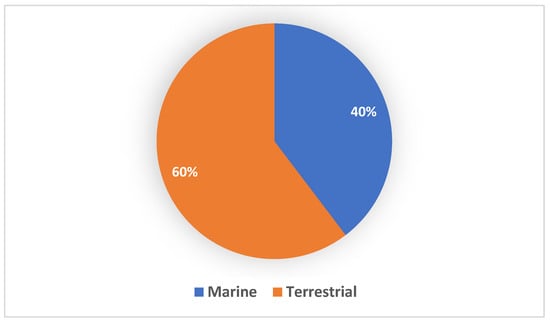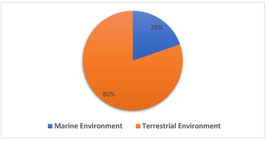 The genus Streptomyces was first discovered as a widespread source of antibiotics in 1943. Subsequently, more than 800 Streptomyces spp. with validly published names have been registered so far []. Rediscovery of known secondary metabolites from Streptomyces species has redirected scientists to the discovery of rare actinomycetes with claims that Streptomyces species are no longer an important biological resource for new antibiotics [,]. Environmental conditions and different habitats strongly contribute to the diversity and production of natural bioactive compounds []. In this review paper, “Streptomycetes” is used to refer to soil and marine microorganisms classified as Streptomyces spp. from the phylum Actinobacteria in the order Actinomycetales and the family Streptomycetaceae []. Streptomycetes are ubiquitous in terrestrial and marine environments with the highest recorded diversity in terrestrial habitats []. Whatever the habitats, the natural products produced by Streptomycetes under normal and extreme conditions exhibit great structural diversity and significant biological activity [,]. Since techniques for the isolation of Streptomycetes are well understood, this genus has been frequently isolated. Consequently, genus Streptomyces produces the highest number of natural products compared to other genera of Actinobacteria.