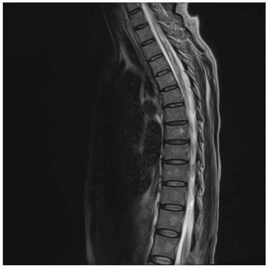 Transverse myelitis (TM) is the inflammation of the spinal cord which causes bilateral sensorimotor dysfunction. The characteristics for diagnosis are the presence of a sensory level, an inflammatory profile of the cerebrospinal fluid (CSF) and disease progression between 4 and 21 days [1,2]. The incidence is one to four cases per million people, and it is classified according to the clinical severity and the radiological extension of the spinal cord injury: partial when its condition is mild or asymmetric; complete when it produces motor, sensory, and autonomic paralysis below the level of the lesion that affects one or two vertebral segments and longitudinally extensive transverse myelitis (LETM) when the lesion extends from three to more vertebrae [3,4]. For the diagnosis, it is important to rule out other causes of spinal cord compression such as malignancies, and the etiology of LETM can be demyelinating, autoimmune, infectious, or paraneoplastic [5,6].