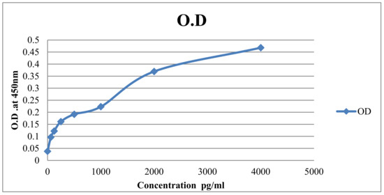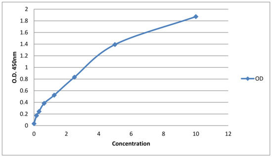 The results of a typical standard run of calprotectin ELISA kit are shown below. The X-axis shows the concentration of calprotectin, and the y-axis shows the O.D value (Figure 4).