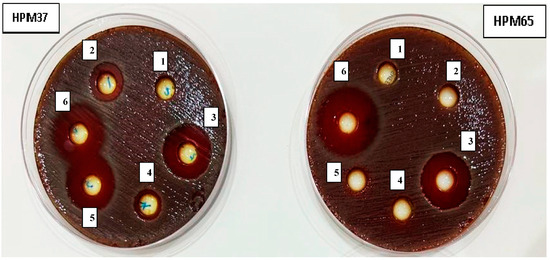 | 13 | HPM56 | 14 ± 06 | 0.0 | 26 | H. pylori NCTC 11637 | 17 ± 06 | 20 ± 04 |
