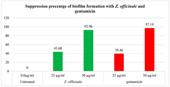 3.4. Antibiofilm Activity of Z. officinale Extract